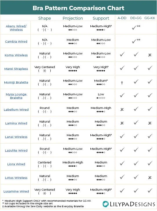 If you’re deciding between a soft everyday bra, a structured underwire, or something with a little extra lift… this chart will point you in the right direction. Take a look, pick your next project, and enjoy the fun part — sewing.